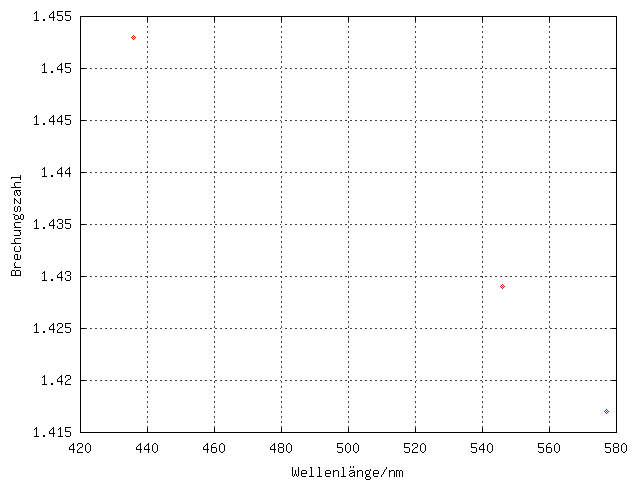 Brechung: Brechungszahl über Wellenlänge
