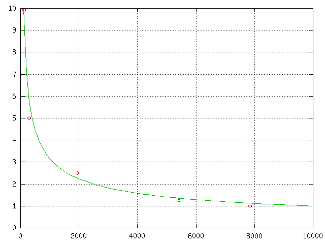 x-Achse: Anzahl der Stützstellen, z-Achse: Prozentuale Abweichung