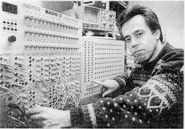 SILBERNE WUNDERKISTE: Dieter Doepfer vor einem seiner analogen Synthesizer, dem Modell A-100. Photo: Gerald Tarufetter |