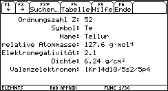 | Bild 1: Das Periodensystem zum Auswählen des gewünschten Elements (Es wurde um vier Elemente in Version 5 erweitert) Bild 2: Die Daten von einem Element (hier: Tellur) Bild 3: Die deutsche Hilfe |